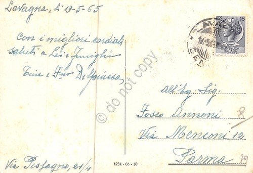 Cartolina Chiavari N.S. dell'Orto Viale delle Palme Monumento 1965