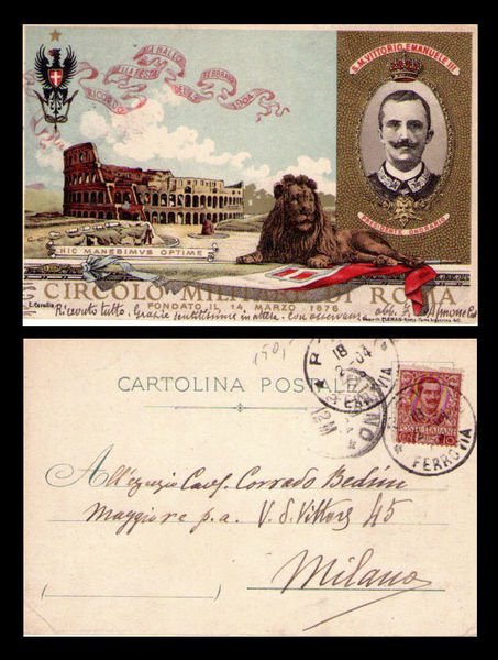 Cartolina Circolo Militare di Roma - Vittorio Emanuele III 13 Febbraio 1904 illustratore E.Cerullo (ricordo festa ballo)