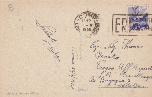 Cartolina COMO - Funicolare di Brunate. 1950
