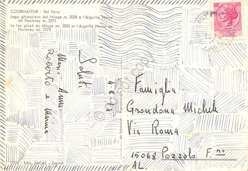 Cartolina Courmayeur Lago ghiacciato del Miage Aiguille Noire de Peuterey 1974 | Cartoline |