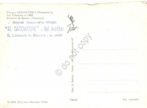 Cartolina Dolomiti di Brenta Rifugio Cacciatori e Chiesetta in Val d'Ambies | Cartoline |