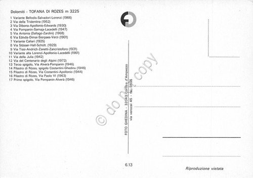 Cartolina Dolomiti Tofana di Rozes con varianti e vie | Cartoline |