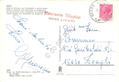 Cartolina Eolie Isola di Vulcano con Vulcanello Timbro Ristorante Filippino 1974