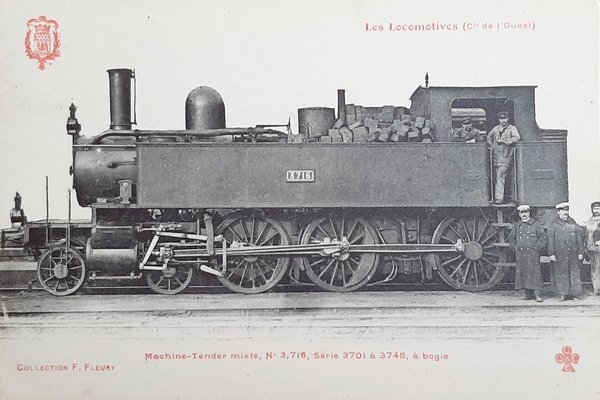 Cartolina Ferrovie - Les Locomotives - Machine Tender n 3.716 serie 3701 a 3745