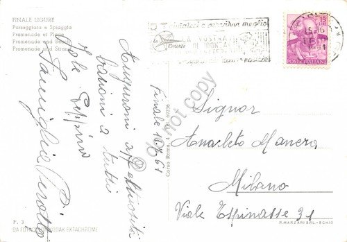 Cartolina Finale Ligure Passeggiata e spiaggia 1961 (Savona) | Cartoline |