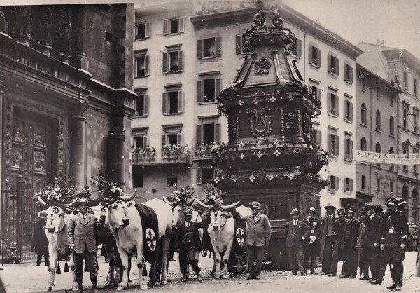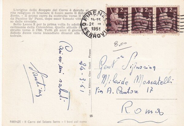 Cartolina FIRENZE - Il Carro del Sabato Santo - I bovi col carro. 1951