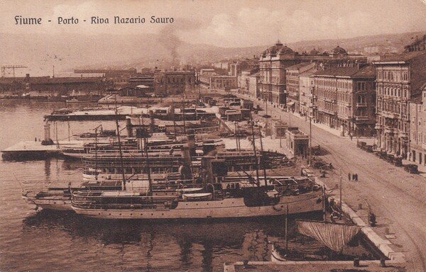 Cartolina Fiume - Porto - Riva Nazario Sauro. 1932
