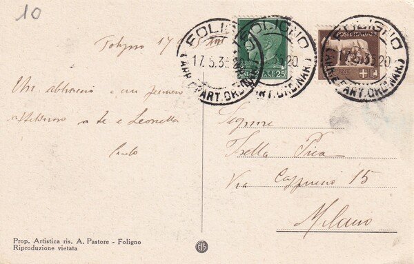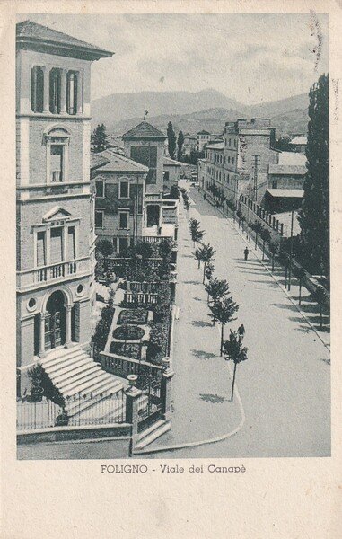 Cartolina Foligno - Viale dei Canapè. 1935