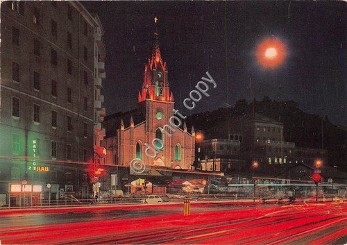 Cartolina Genova Piazza Dinegro Chiesa San Teodoro notturno