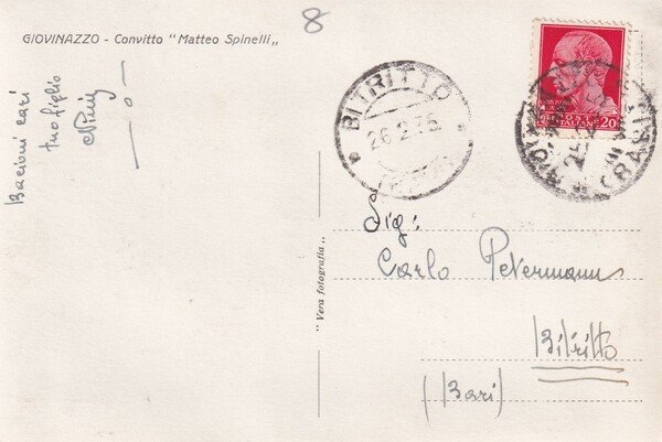 Cartolina Giovinazzo (Bari) - Convitto "Matteo Spinelli". 1935