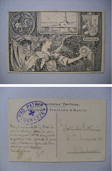 Cartolina GORIZIA ITALIANA - Pro Patria VARAZZE. Illustrazione M.L.K.