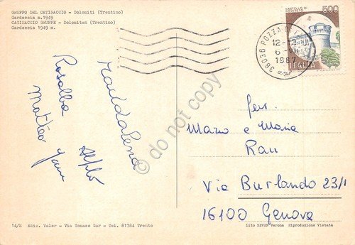 Cartolina Gruppo del Catinaccio Gardeccia 1987 | Cartoline |