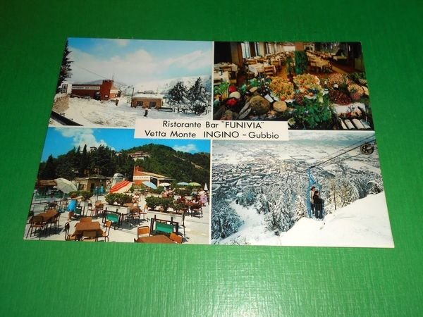 Cartolina Gubbio ( Perugia ) - Vetta Monte Ingino - Ristorante "Funivia" 1970 ca