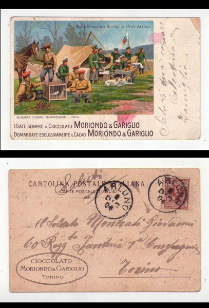 Cartolina Guerra Russo - Giapponese - Stato Maggiore Russo a Port - Arthur. Cioccolato Moriondo & Gariglio. 1904