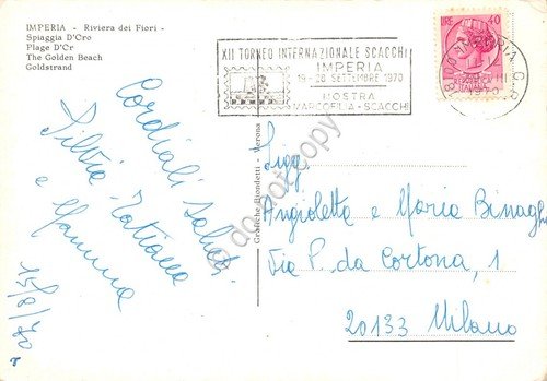 Cartolina Imperia spiaggia Timbro a targhetta XII Torneo Intern Scacchi Imperia | Cartoline |