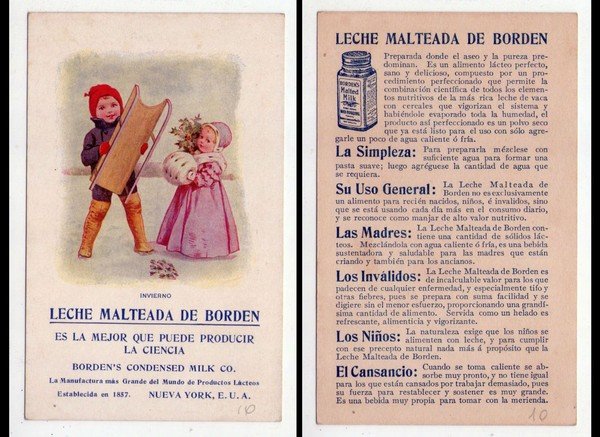 Cartolina INVIERNO. Leche Malteada de Borden - Es la major que puede producir la ciencia. Borden´s Condensed Milk.