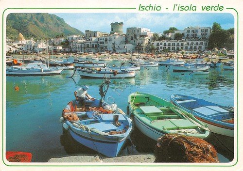 Cartolina Ischia Forio dal molo barche pescatore reti anni '70 | Cartoline |