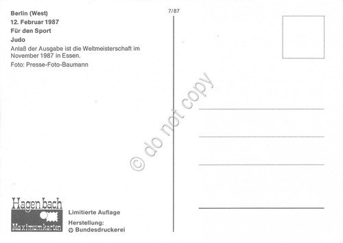 Cartolina Judo Fur den Sport Berlin West 1987 timbro filatelico 1987 | Cartoline |