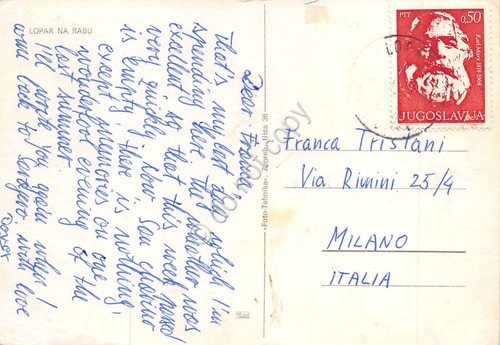 Cartolina Jugoslavia Lopar Na Rabu spiaggia Citroen DS anni '60