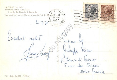 Cartolina La Thuile Panorama verso strada e colle del Piccolo San Bernardo 1970