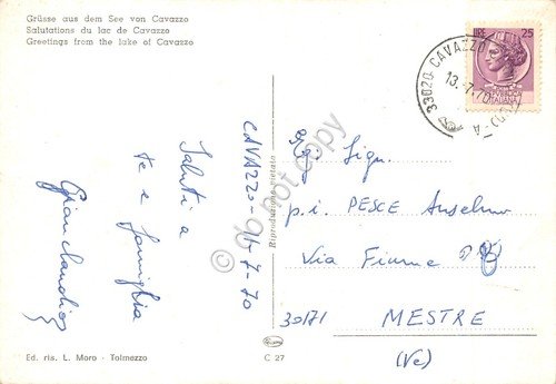 Cartolina Lago di Cavazzo Alesso la Centrale e Somplago Saluti da 1970