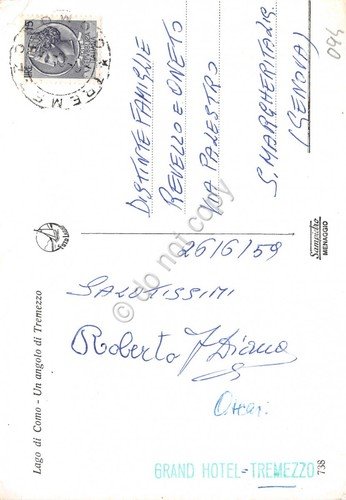 Cartolina Lago di Como Tremezzo panorama parziale Timbro Grand Hotel 1959 | Cartoline |
