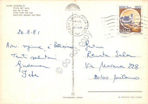 Cartolina Laigueglia Panorama della spiaggia dal mare Hotel Bristol 1981 | Cartoline |