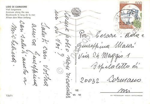 Cartolina Lido di Camaiore Lungomare animata auto d'epoca 1987 | Cartoline |