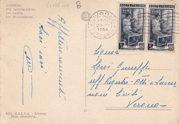 Cartolina Livorno - Gli scali. 1952