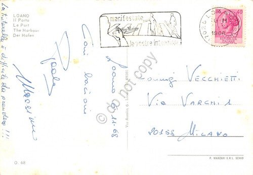 Cartolina Loano Porto Timbro a targhetta Manifestate le vostre intenzioni 1968 | Cartoline |