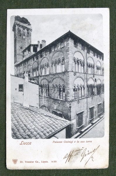 Cartolina Lucca - Palazzo Guinigi e la sua torre - 1901