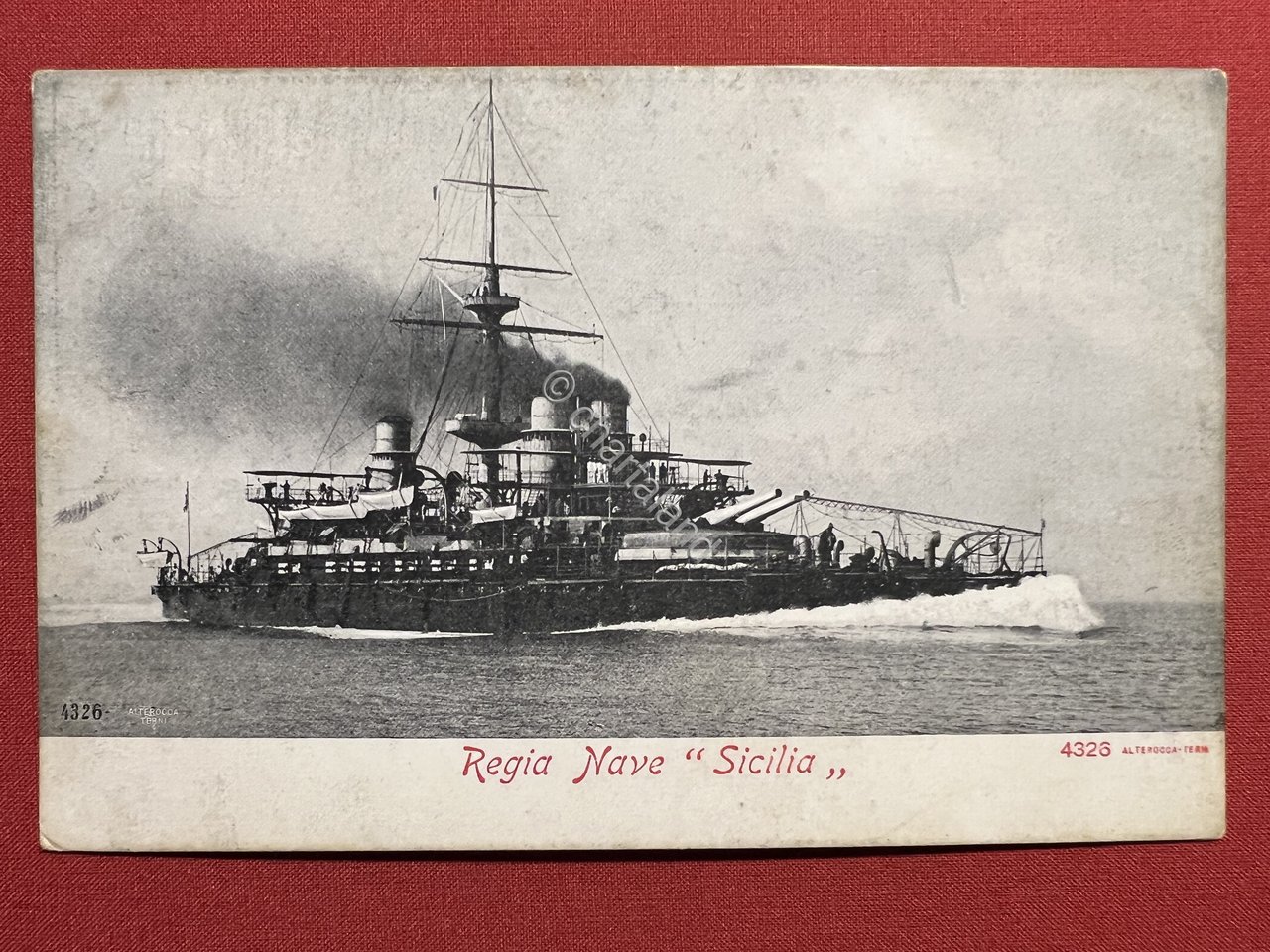 Cartolina Marina Militare - Regia Nave Sicilia - 1900 ca.