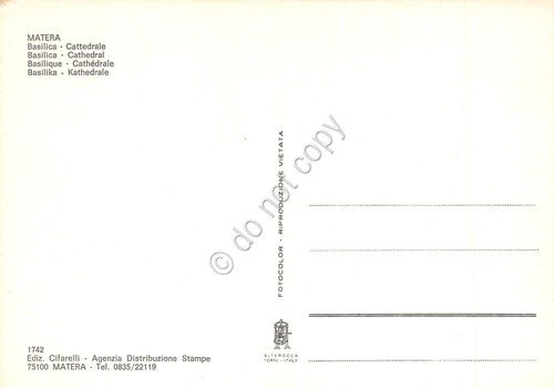 Cartolina Matera Basilica Cattedrale auto d'epoca anni '70