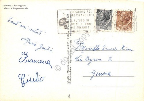 Cartolina Merano Passeggiata Timbro targhetta PT (Bolzano)