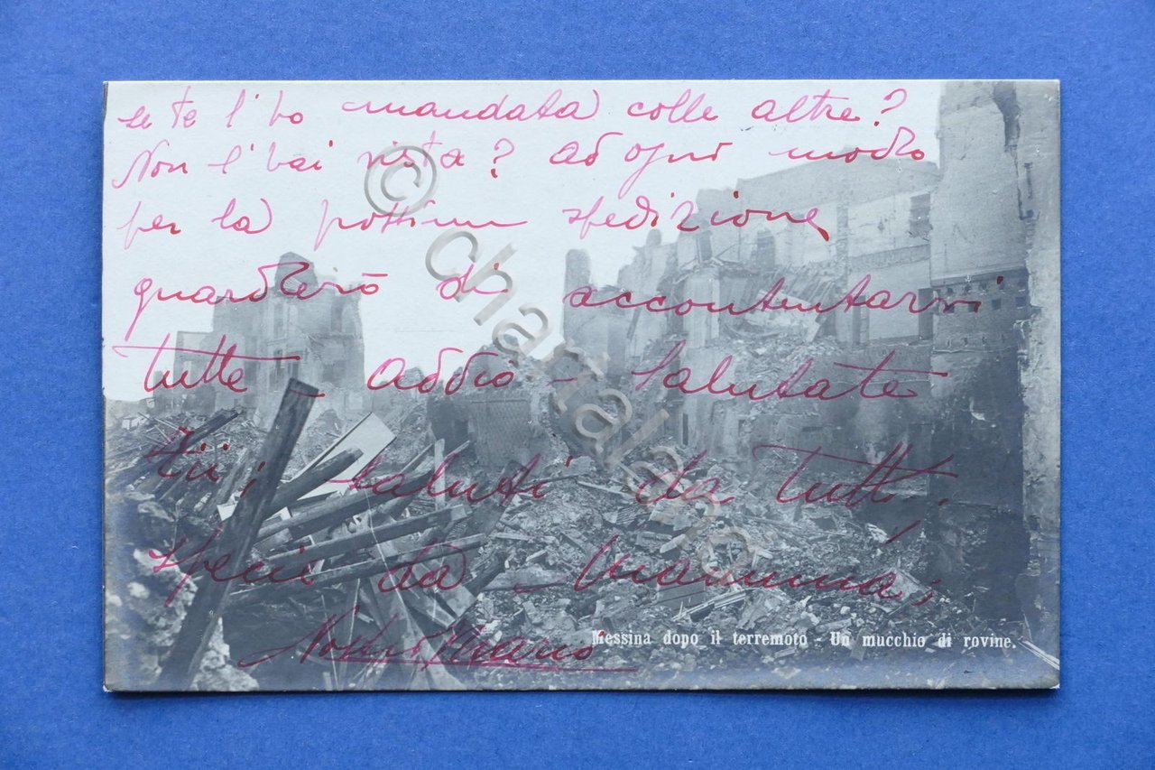 Cartolina Messina dopo il terremoto - Un mucchio di rovine - 1909 1909 Cartolina formato piccolo - viaggiata Condizioni buone, come da foto Per appassionati, studiosi e collezionisti