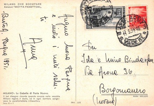 Cartolina Milano che scompare illustrata Le Gabelle di Porta Nuova Ed Motta 1951 | Cartoline |