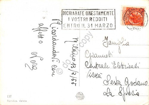 Cartolina Milano Teatro alla Scala animata Rigoletto Loherin Timbro targhetta