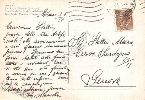Cartolina Milano Teatro alla Scala interno illustrata 1953 | Cartoline |