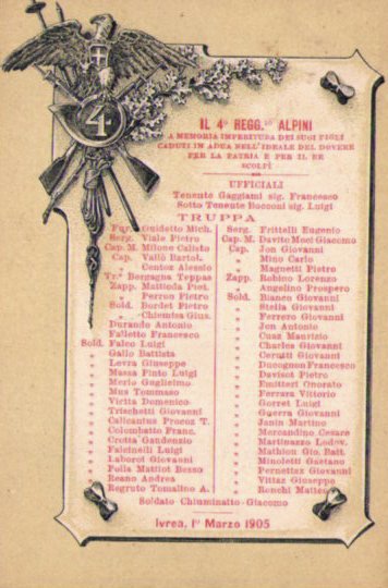Cartolina Militare 4°Reggimento Alpini (In memoria dei caduti) 1905