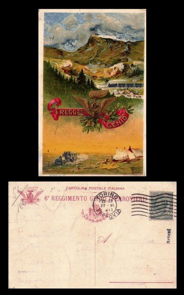 Cartolina Militare 6°Reggimento Genio Ferrovieri 1917 ill.G.Levis