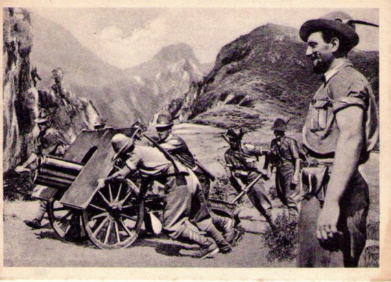 Cartolina Militare Alpini Italiani. MANOVRE 1940ca. Al retro scritto stampato Carlo Dell'Acqua