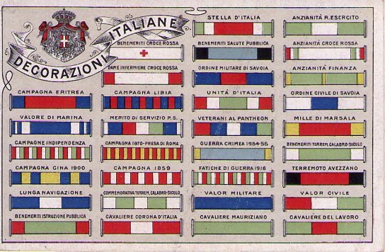 Cartolina Militare DECORAZIONI ITALIANE (nastrini/esercito/marina) Primi'900