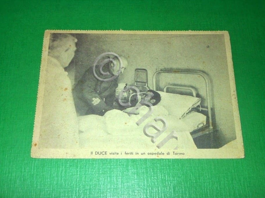 " *** Cartolina Militaria WWII - Mussolini visita i feriti in un ospedale di Torino. La cartolina non è viaggiata. Databile 1942 ca. Formato grande. Per appassionati, studiosi e collezionisti