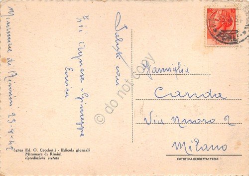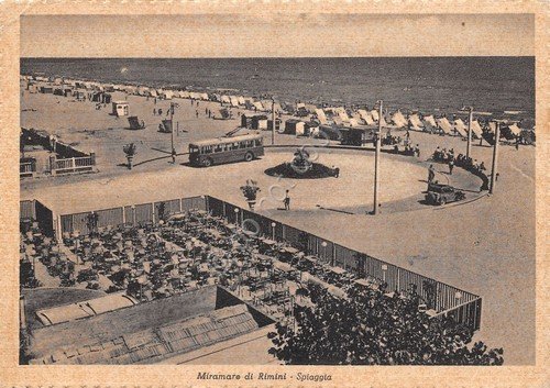Cartolina Miramare di Rimini Spiaggia dall'alto bus bar con tavolini 1942 | Cartoline |