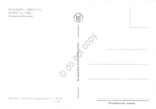 Cartolina Moena panorama Notturno paese case anni '70