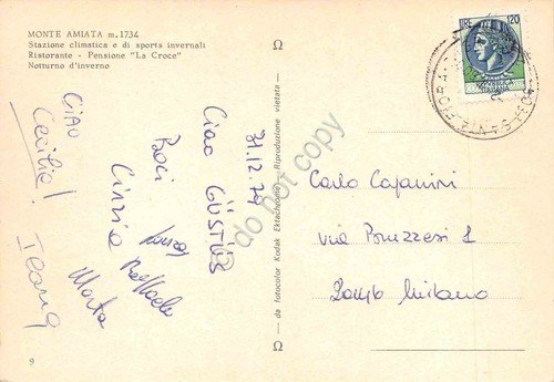 Cartolina Monte Amiata Pensione La Croce Notturno in inverno neve 1979 | Cartoline |