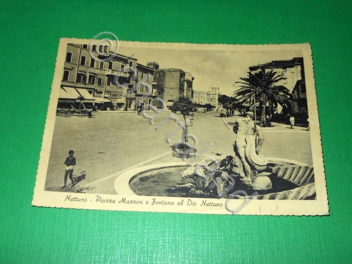 Cartolina Nettuno - Piazza Mazzini e Fontana al Dio Nettuno 1952