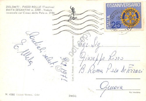 Cartolina Passo Rolle Dolomiti Baita Segantini panorama invernale 1971
