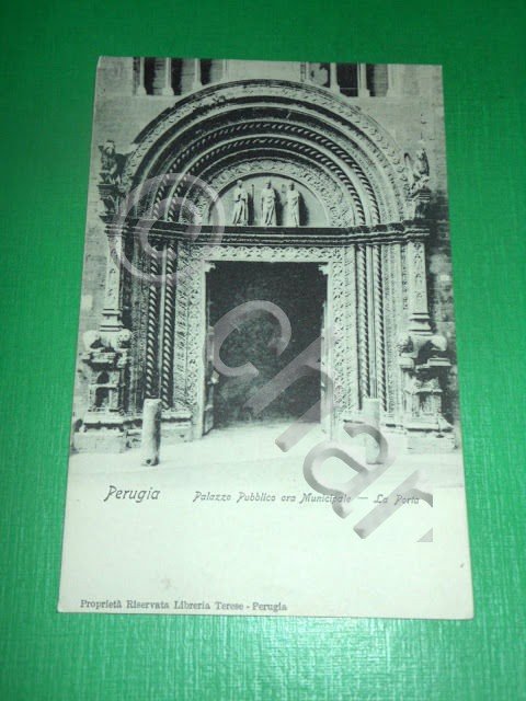 Cartolina Perugia - Palazzo Pubblico ora Municipale - La Porta 1904.