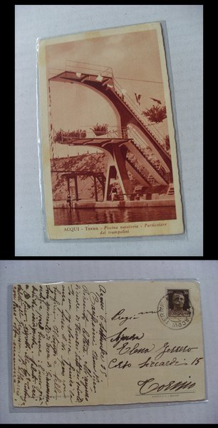 Cartolina / postcard Acqui Terme (Alessandria) Piscina natatoria - Particolare dei trampolini